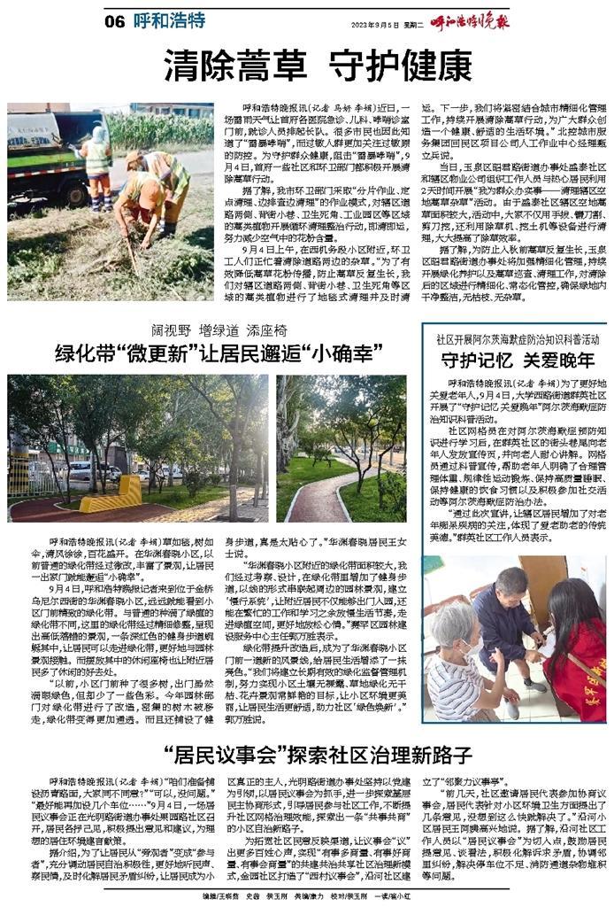 呼和浩特晚报讯(记者 马妍 李娟)近日,一场雷雨天气让首府各医院急诊、儿科、哮喘诊室门前,就诊人员排起长队。很多市民也因此知道了“雷暴哮喘”,而过敏人群更加关注过敏原的防控。为守护群众健康,阻击“雷暴哮喘”,9月4日,首府一些社区和环卫部门都积极开展清除蒿草行动。